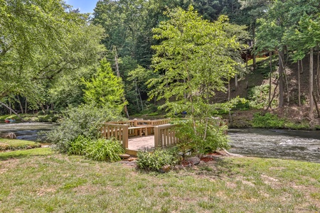 by Mark HopkinsCan\'t say enough good things. Grounds were park-like. The view of the Cartecay were unobstructed both from the riverside deck and from the spectacular porch. The cabin was meticulously clean and well appointed. This was not our first stay, and hopefully will not be our last. Looking for a small place? Look no further.